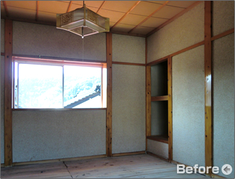 以前はキッチンがあった場所に大容量の収納を備えた洋室。