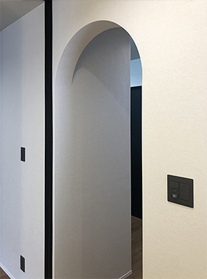 アーチのラインが直線的な廊下にアクセントを加え優しい雰囲気を演出します。